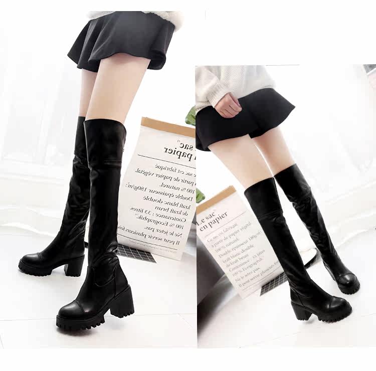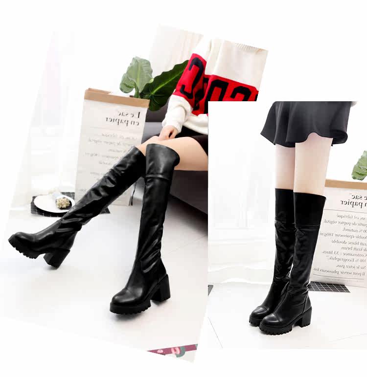 韩版过膝长靴高跟高筒女靴潮女秋冬季新款粗跟长筒学生女棉靴