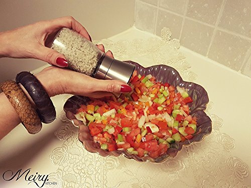 KEEPS SPICES FRESH- Planned and designed with consideration of the user - Solid glass and stainless steel seal cup for keeping the spices fresh as new. Sharp & Quality mill for slicing spices like: peppercorn, Sea salt, Kosher salt, Pink Himalayan salt and more!