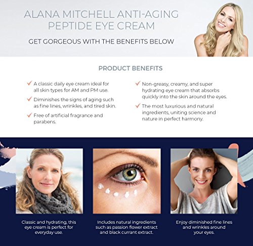 SAY GOODBYE TO UNDER EYE AGING: Alana Mitchell's Anti-Aging Peptide Eye Cream NOTICEABLY REDUCES FINE LINES, CROW'S FEET, and DARK CIRCLES.