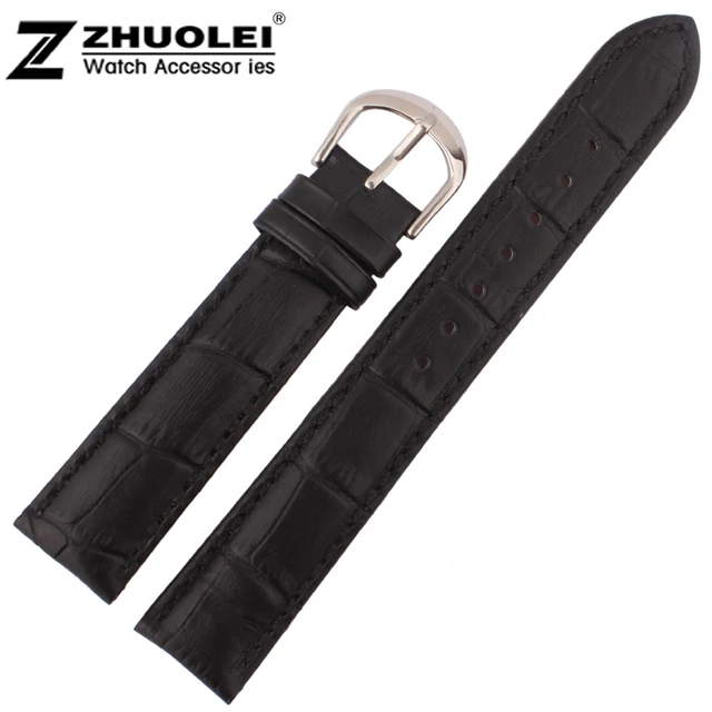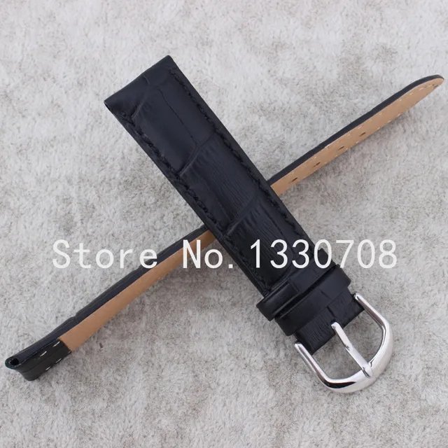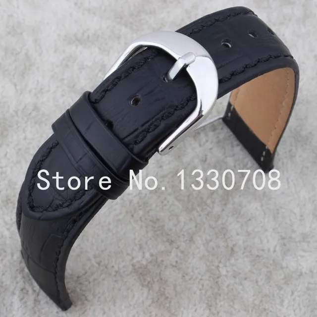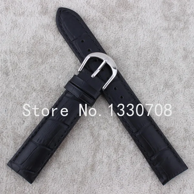 | [해외] 20 미리메터 도매 가격 새로운 최고 품질 블랙 정품 가죽 시계 스트랩 손목 시계 실버 스테인레스 스틸 버클 걸쇠 |