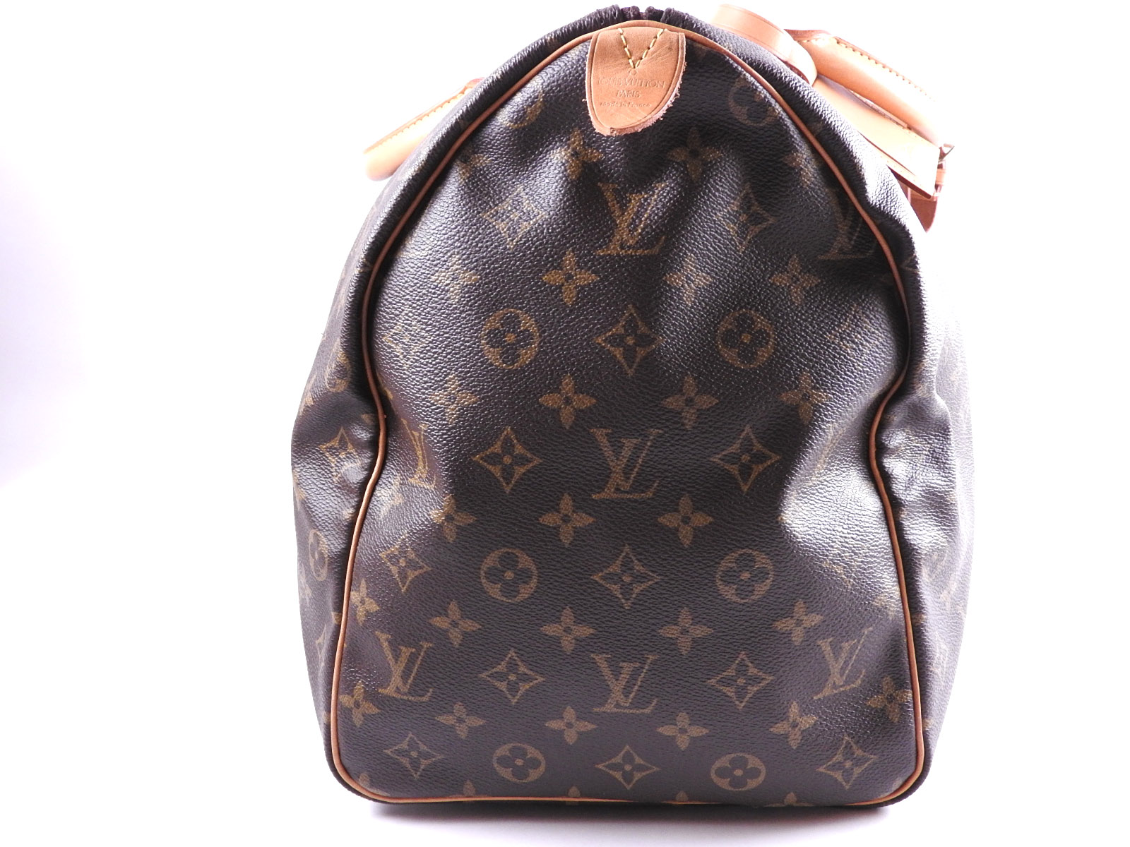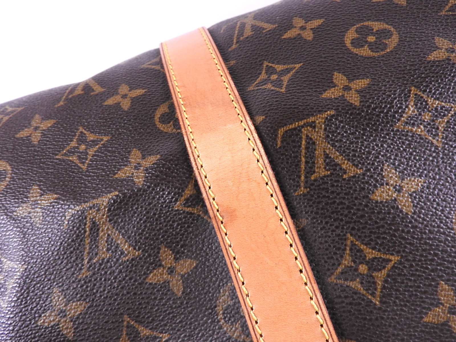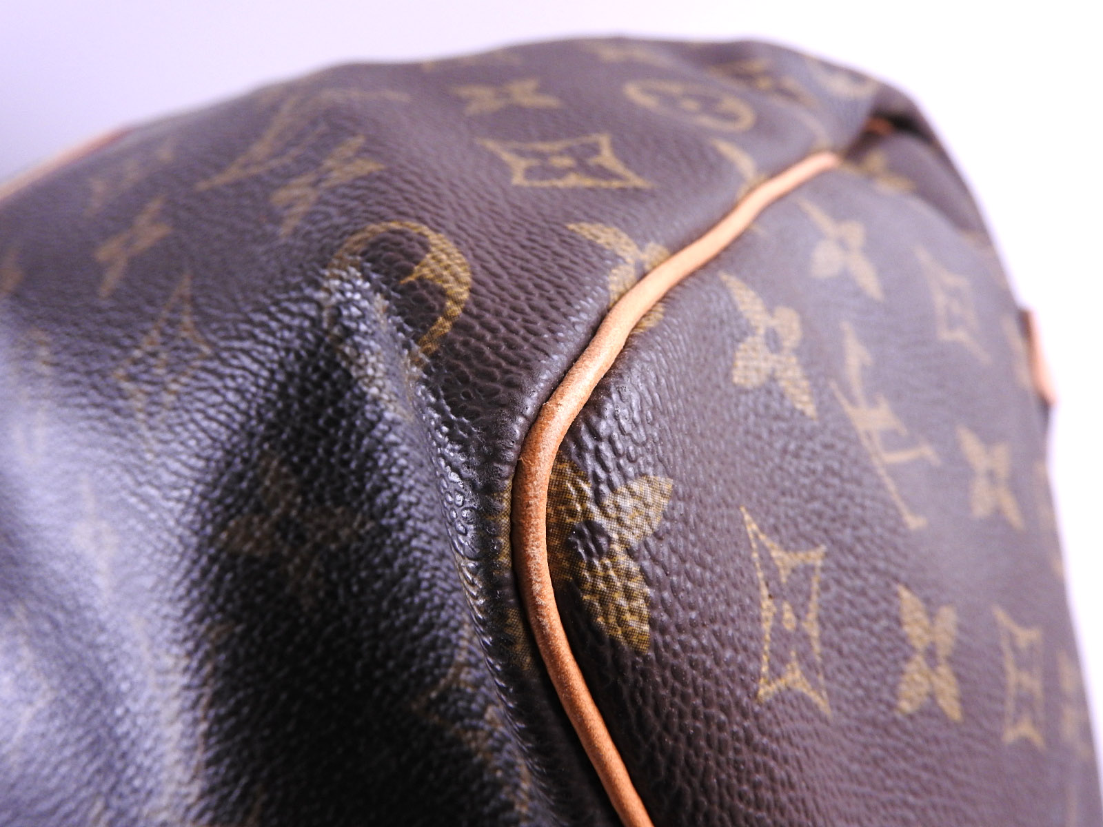 Monogram: Slightly used feeling. Slight stains and wrinkles. Leather: Slightly used feeling. Small scratches, some light stains and tanning. |