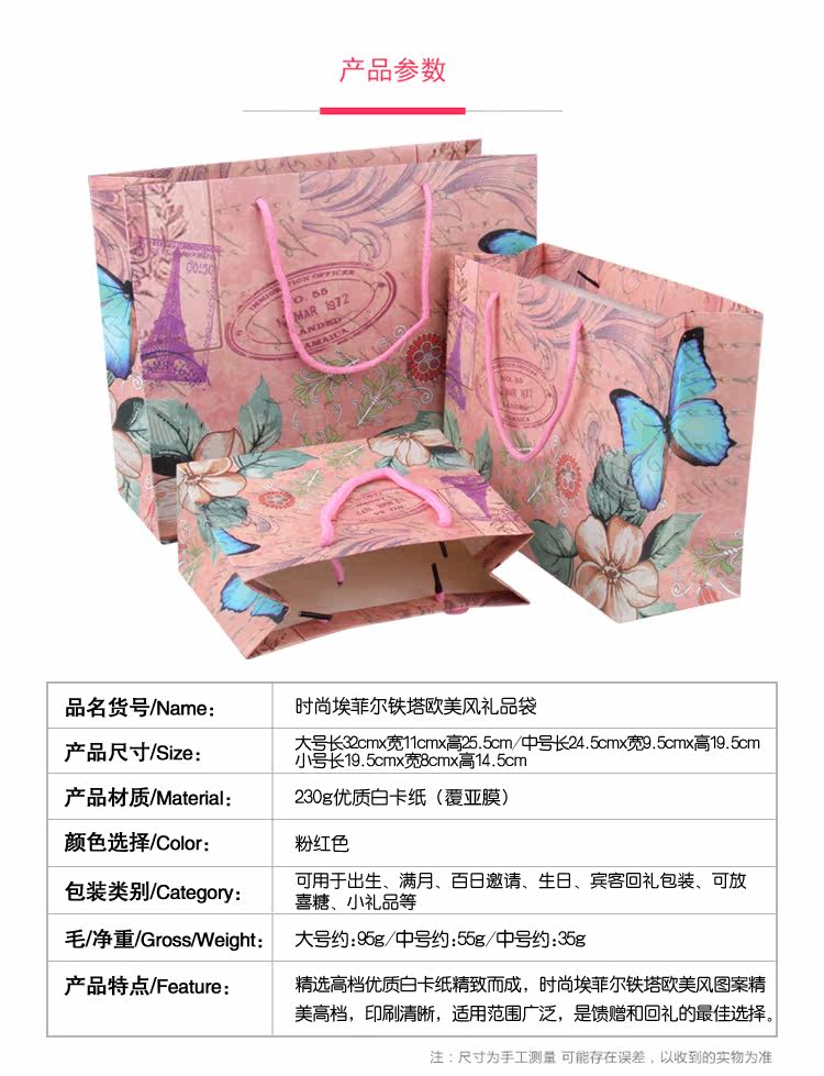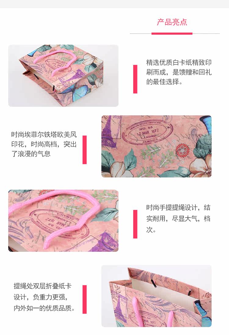 新款欧式蝴蝶高档时尚精美礼品袋 高档手提袋子 创意纸袋