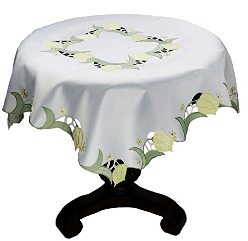 Xia Home Fashions Spring Tulip Embroidered Cutwork Spring Table Topper, 36 by 36-Inch