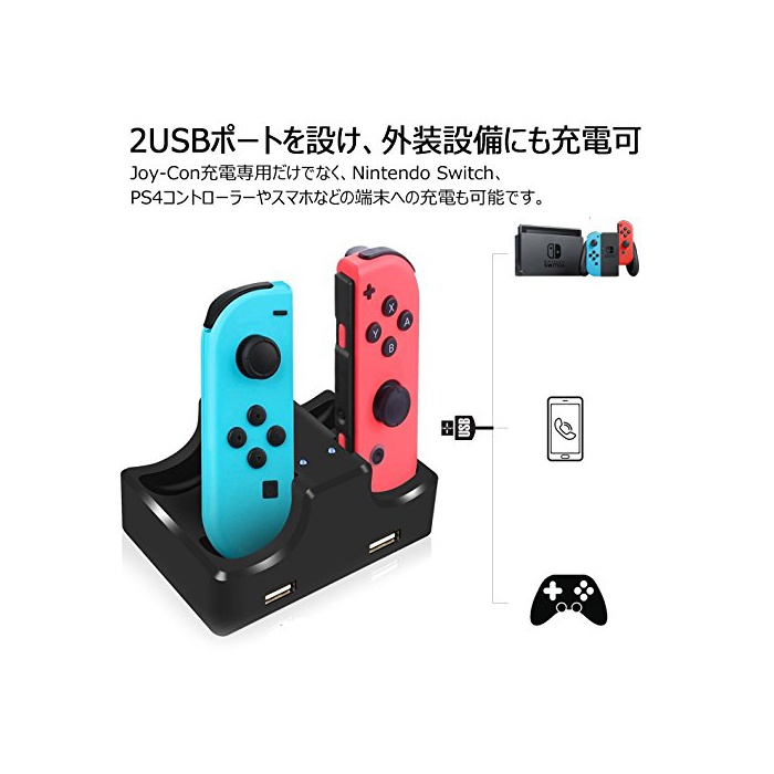 원본상품명: 【Nintendo Switch】Joy-Con充電スタンド Siensync 4台同時充電 Joy-Conコントロラ充電器 急速充電 充電指示ランプ付き 2USBポト 充電ステション 携