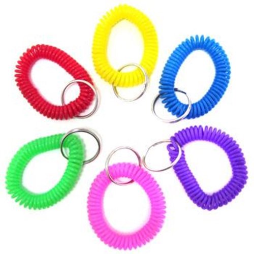 These key chains are coiled in a spiral pattern for elastic convenience and style