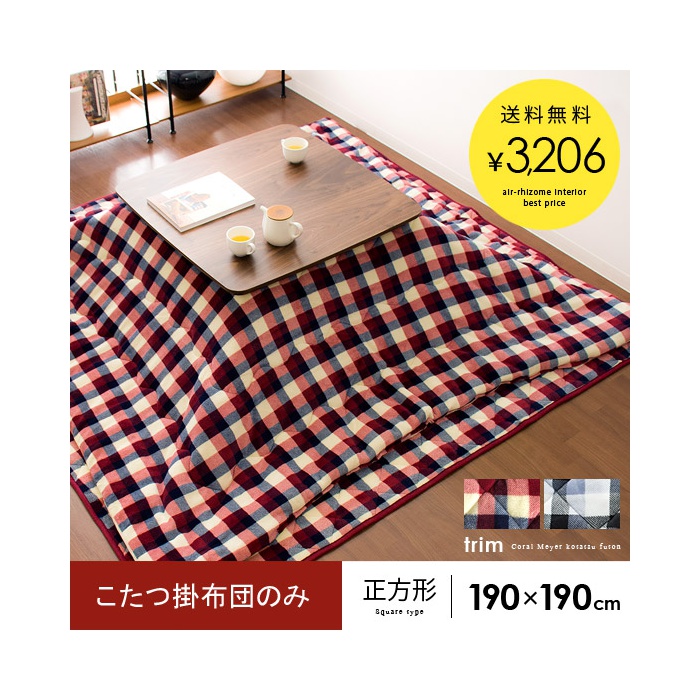 원본상품명: こたつ布? 正方形 こたつ掛け布? おしゃれ 北? こたつ 掛け布? コンパクト コタツ布? 薄掛け 省スペ?ス ふかふか サンゴマイヤ? マイクロファイバ? チェック trim〔トリム〕 掛け布? 190x190cm 正方形