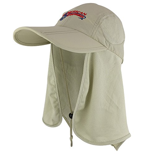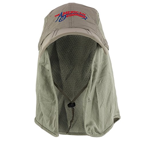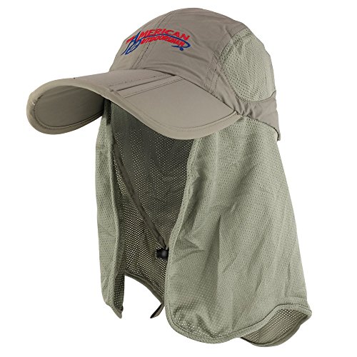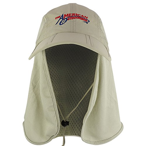 Binding : Apparel Product Description American Outdoorsman Taslon UV Protection UPF 50 Folding Bill Cap with Mesh Flap will your favorite hat for any outdoor adventure. Take it with you on your next fishing or camping trip and protect yourself from the beaming sun. Need that extra protection against the sun but always hate bringing too much stuff with you on your adventure? The Bait and Tackle is just what you are looking for. With its mesh flap and foldable bill, the multi-purpose cap is complete packable into the included back. Despite its portability, the Bait and Tackle supremely capable, offering UV and water protection while packing moisture wicking sweatband and mesh panels on the inside. The adjustable chin cord and elastic closure adds to the fit and comfort but not the weight of the versatile cap. This cap is water proof with Moisture wicking sweatband to help keep sweat away from your face. Mesh Flap. Adjustable Chin Cord. Foldable Bill. Mesh For Ventilation. Packable. Adjustable Chin Cord. Elastic Closure. One size fits most. 0