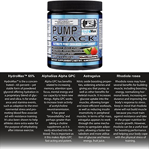 FEATURING FULL INGREDIENT LABEL DISCLOSURE – PUMP STACK NON STIMULANT PREWORKOUT touts a full disclosure label showing you exactly how much of each ingredient it contains. Key ingredients HydroMax™ 65% Glycerol, AlphaSize™ 50% Alpha GPC, Astragalus Membranaceus and Rhodiola Rosea (std. to 3% Salidrosides) in efficacious doses provide increased nitric oxide production, fuller muscles and super vascularity. Best stimulant free pre workout on the market