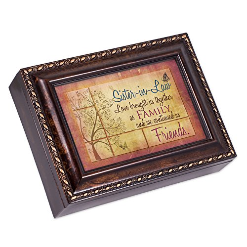 Studio : Cottage Garden Publisher : Cottage Garden Binding : Kitchen Product Description This is a beautifully designed music box by Cottage Garden Collections that features a rich burlwood finish with a gold brushed rope design accent trim. It plays a high quality Sankyo music mechanism that can be seen on the inside of the box through protective glass. It plays the classic tune Canon in D. It has a 4x6 photo frame lid so the picture can be exchange for a personal photo. The feet are cushioned so they don't scratch surfaces. The box has a 4x4x1.5 inch cavity for storing jewelry and keepsakes. The inside is lined in nice black velvet. The hinges prevent the lid from falling all the way back and getting damaged when opened. This makes a beautiful gift for any age. 0