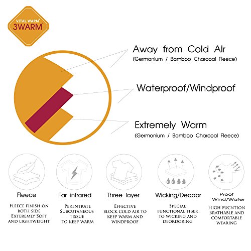 -. Feature : Innovative Fiber-- Using germanium material and bamboo charcoal fiber to make the physical activity get more energy and release the far infrared and negative ions to improve blood flow and increasing oxygen-carrying capacity, keep your better performance to maintain an optimal temperature. / Unique Design-- With the sandwish concept design, put breathable waterproof PTFE into fleece fabric, not only have the function of water repellency and windproof, but also extremely warm in cold weather. / Suitable for winter-- The drop down fleece design for protecting your ears and forehand against the chilly weather of winter. / Multifunctional Accessories-- 3WARM series are extremely warm products, you can wear not only on the snow but also in outdoor activities.