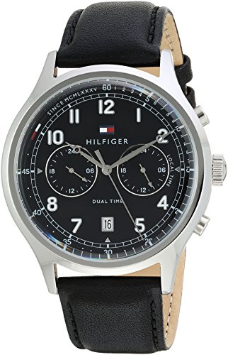 TOMMY HILFIGER MEN'S 'SPORT' QUARTZ STAINLESS STEEL AND LEATHER CASUAL WATCH, COLOR:BLACK (MODEL: 1791388)