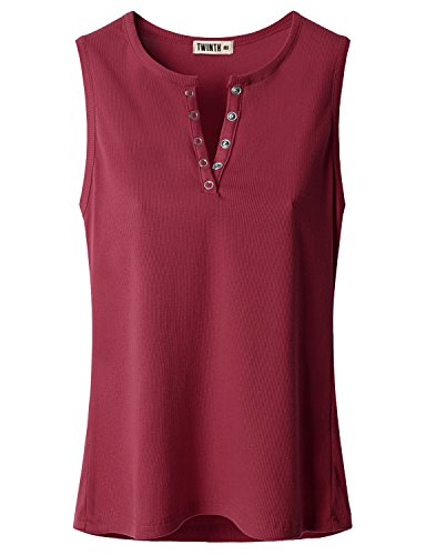 -. Title : Doublju Womens Henley Button Sleeveless T-shirt