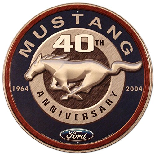 Mustang 40th Round Tin Sign 12 x 12in