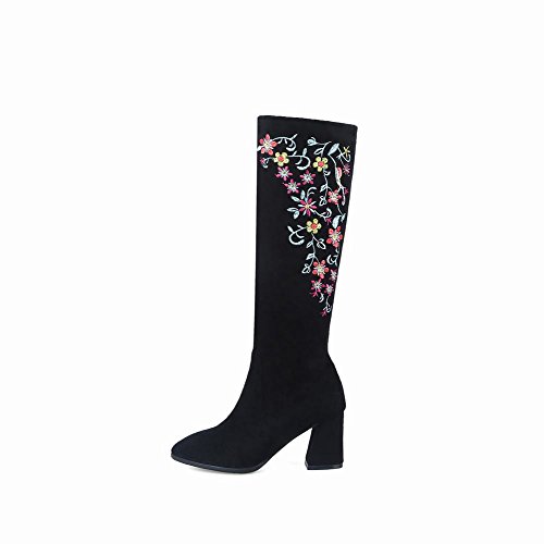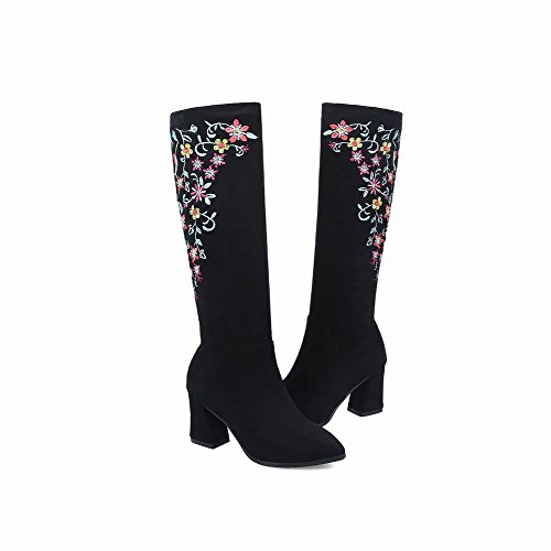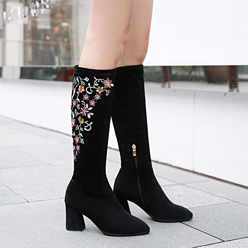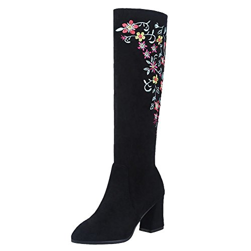 (Charm Foot)/Women's/Boots/DIRECT FROM USA/Charm Foot Women's Embroidery Flower Chunky High Heel Knee High Boots