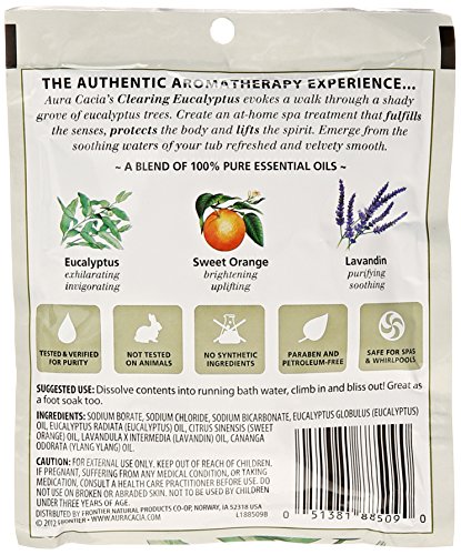 Aura Cacia Eucalyptus Harvest evokes a walk through a grove of eucalyptus trees after a cool rain. A blend of mineral-rich ocean and desert salts with 100% pure and completely natural eucalyptus essential oil. Aura Cacia Eucalyptus Harvest Mineral Bath formula will create a spa-quality therapeutic bath that fulfills the senses, heals the body and lifts the spirit. Achieve a renewed sense of balance and well-being. Emerge from the healing waters of your tub refreshed and velvety-smooth.Feature