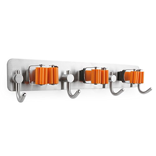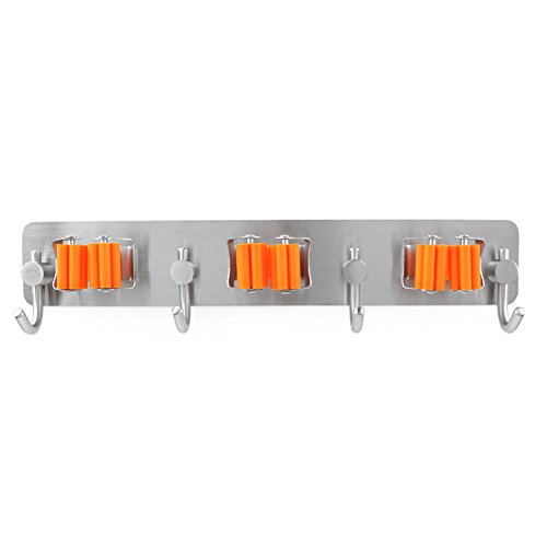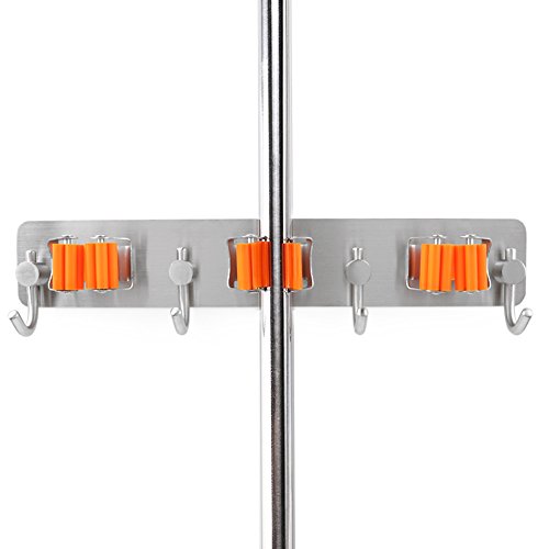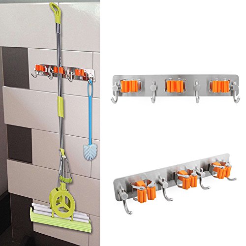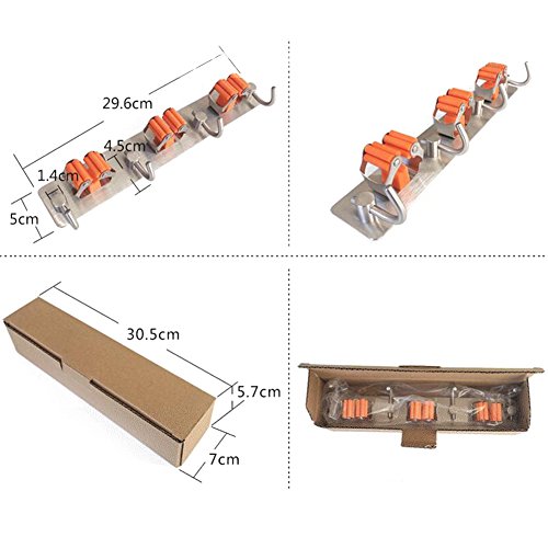 - ♥MECHANICAL DESIGN: three fixed position is the memory spring steel material, clip tight, broom and mop and so easy to fall off, easy storage, each unit has four hooks can let you have enough places to lift the bucket, rags or other The hook on the item on it. Able to withstand 3-5kg