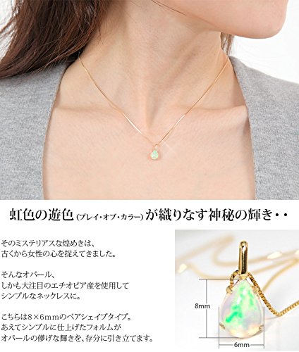 -. Title : K18YG 8x6mmエチオピア産オパール 雫 ペアシェイプ シンプル ネックレス [ジュエリー]