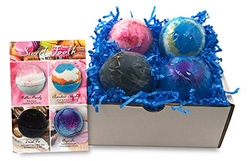 - BOX OF 4 – Sweet Tooth Collection of XL 4.5 oz Handcrafted Bath Bombs Includes: Cotton Candy, Rainbow Sherbet, Mud Pie and Cupcake BetterBombs