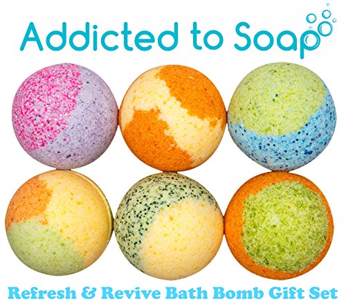 Addicted to Soap - 6 Bath Bomb Gift Set | Refresh and Revive - Grape Soda, Mango Papaya, Jack Frost, Orange Guava, Kiwi, Melon Ball