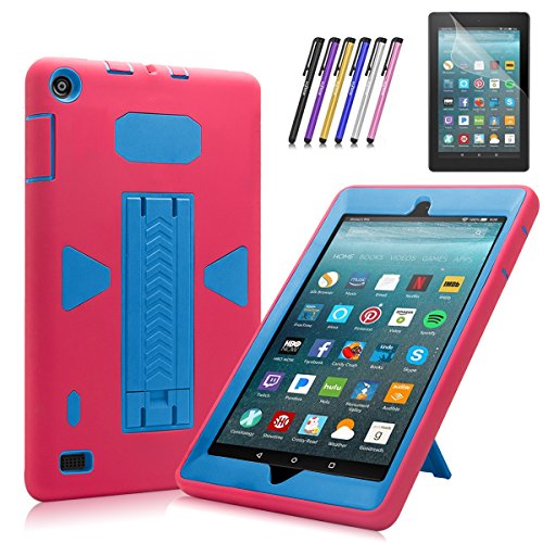 -. Feature : Precisely Designed Hybrid Protective Case for All-New Fire 7 Tablet (7th Generation 2017 Release) / Three part component case, hard plastic front and back bumper case and a soft silicon rubber outer case / This Combo case can protect tablet from scratch and dust, also provide excellent impact resistance / Build in Kickstand for hands-free typing and watching movie / Allows easy access to all buttons, controls and ports without removing the case