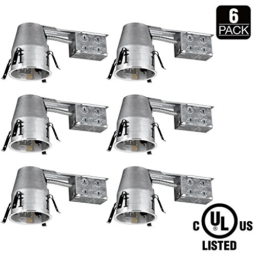 TORCHSTAR 4-inch UL-listed Remodel Can, Air Tight IC Housing, E26 Socket Included, Recessed Retrofit Kit For 120V Line Voltage,Max 35W, Pack of 6