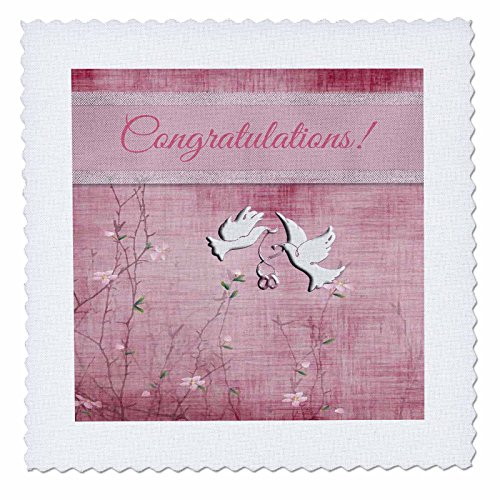 3dRose White Doves, Wedding Rings, Ribbon, Pink Flowers, Congratulations - Quilt Square, 10 by 10-Inch (qs_216647_1)