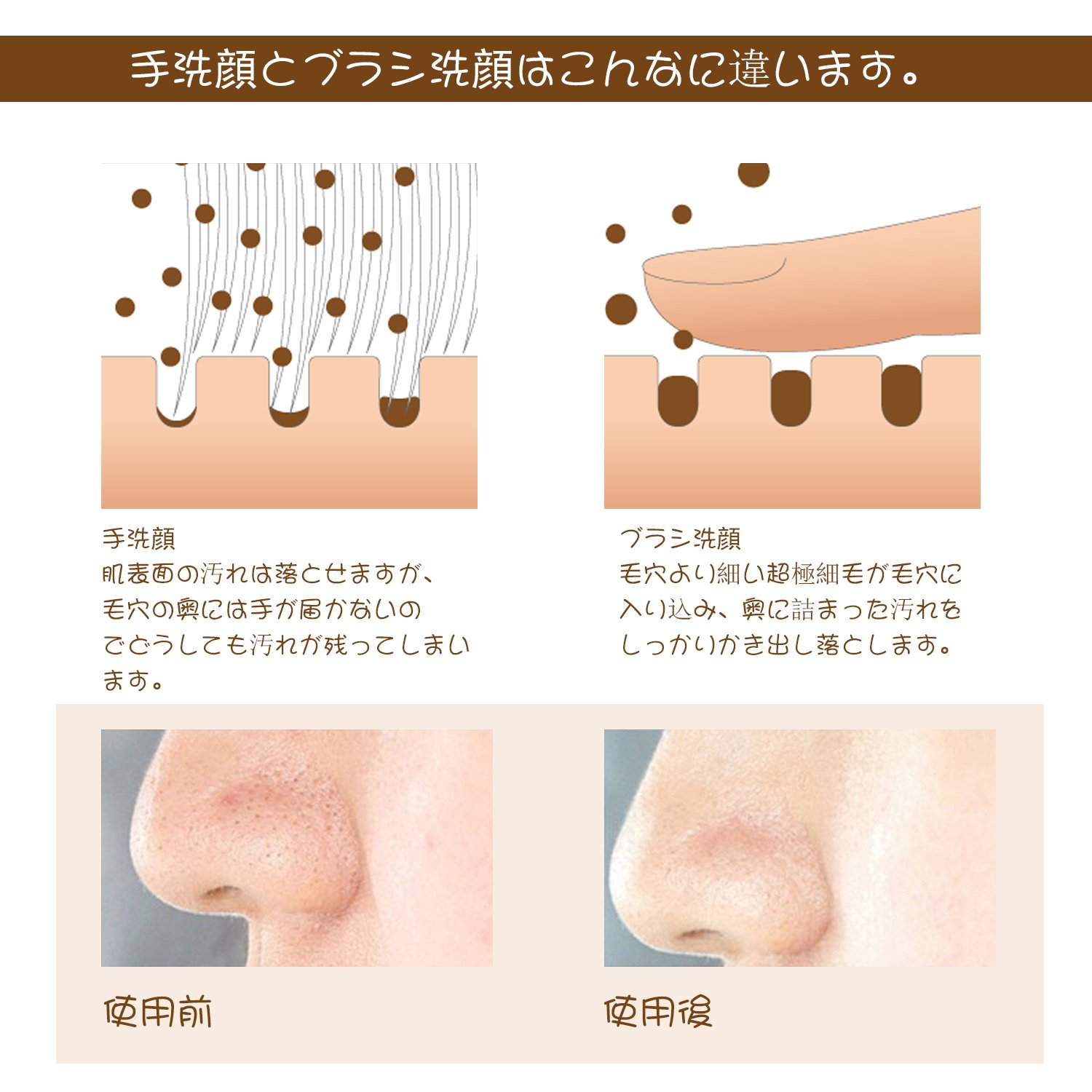 [Contrast between hand washing face and brush washing face]