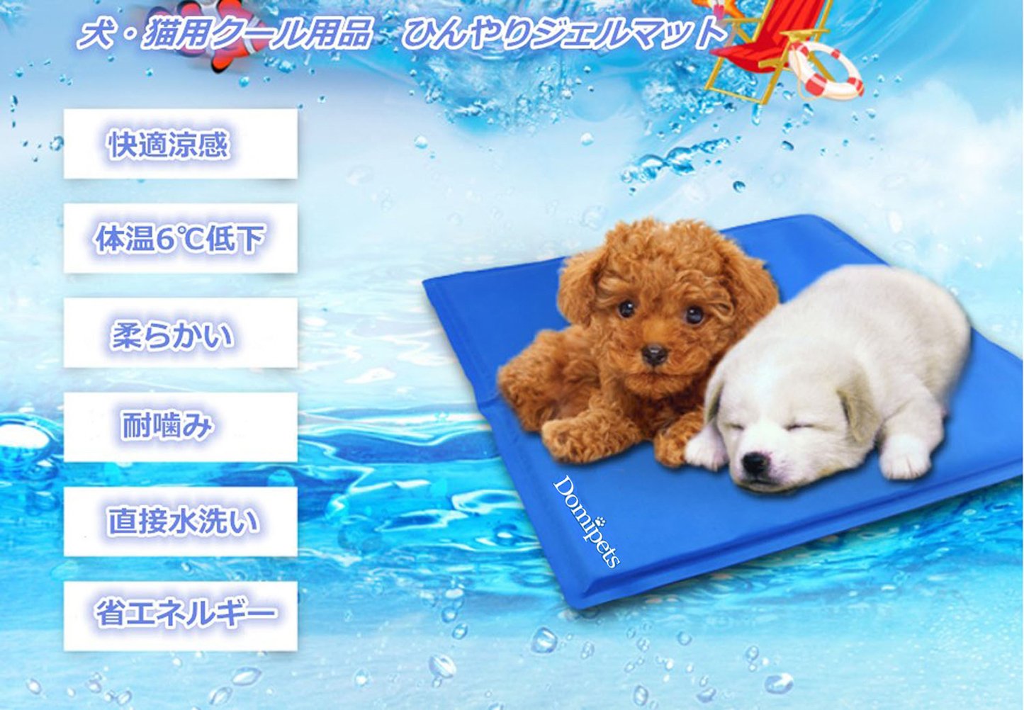 ペット夏バテ対策!ジェル素材を使用し、ひんやり、爽やかなクールマットです。体温温度が6℃低下、愛犬に優しく涼しい。