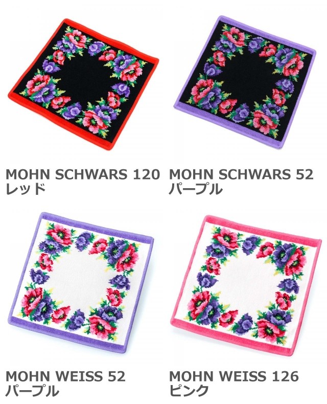 | カラー | 全4色 MOHN SCHWARS 120 レッド MOHN SCHWARS 52 パープル MOHN WEISS 52 パープル MOHN WEISS 126 ピンク | ||