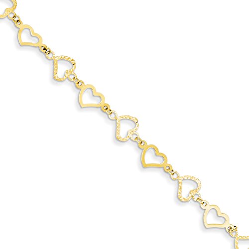 Roy Rose Jewelry 14K Yellow Gold Flat Diamond Cut Open Hearts Bracelet ~ Length 7.25'' inches