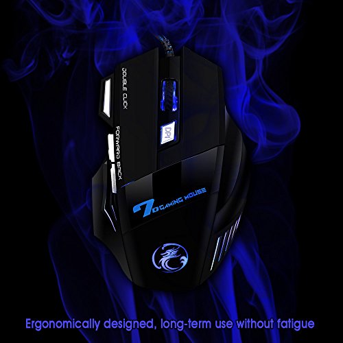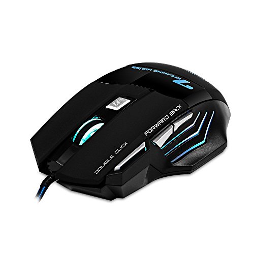-. Feature : Ergonomic design: it will perfectly snugly fit under your palm; the ergonomic shape of the mouse gives gamers the most comfortable gaming experience ever. / Surface tuning calibration: Easily calibrate the optical sensor to get best tracking performance for your specific mouse pad surface. / 7 buttons optical gaming mice: left/right button,scroll wheel,forward/backward button,DPI setting,double click button; convenient both for gaming or surfing the internet. / 4 on-the-fly DPI settings: Shift instantly from pixel precise targeting to lightning fast maneuvers (1600 to 5500 DPI) / Lightweight, cool LED lights design: 5.1x3.4x1.5 in,3.7oz;7 modes LED lights change automatically on the logo.