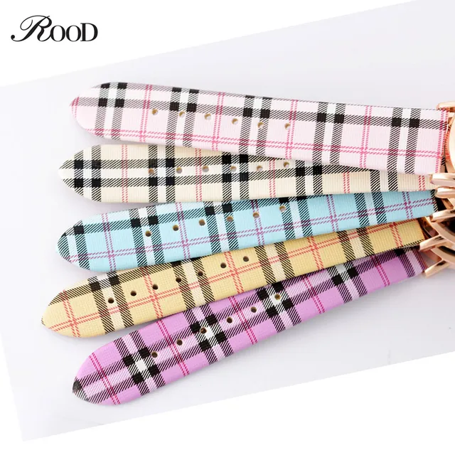 | [해외] 가죽 손목 20 미리메터 여성 5 색 얇은 그리드 가죽 시계 스트랩 여성 패션 손목 격자 가죽 계시 벨트 |