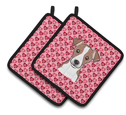 Caroline's Treasures BB5330PTHD Jack Russell Terrier Hearts Pair of Pot Holders, 7.5H X 7.5W", Multicolor