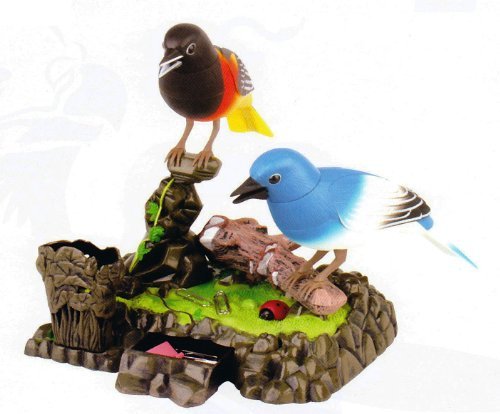 -. Feature : Two Chirping Birds on a Tree Branch (Authentic Sound) / Sound/Motion Activated / Birds move their beak, neck, body and wings in realistic fashion / Set includes two Baltimore Orioles in different colors / Requires 3 x AA Batteries (NOT included)