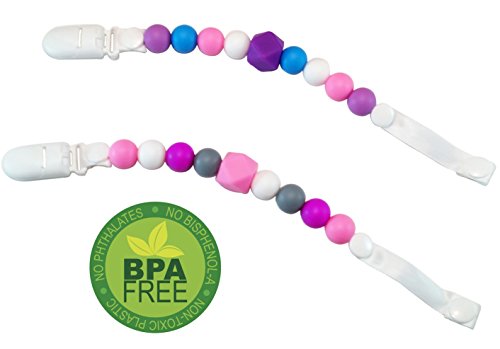 -. Title : Pacifier Clip - 2 Pack - Silicone Baby Teething Pacifier Clips - GIRL - BPA-Free - Non-Toxic - Sensory