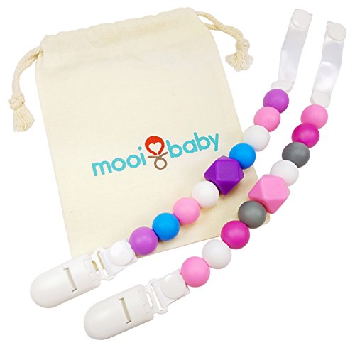 -. Feature : TRENDY AND FUNCTIONAL - Our mooi baby 2 pack silicone pacifier clips combine function with fashion to provide high-quality clips to make your life easier, and cleaner! / STRONG, WASHABLE AND DURABLE - Our clips are made of 100% silicone beads, are washable and durable, and have strong plastic clips so as not to rust or hurt baby's teeth or gums / MULTI-FUNCTIONAL - Great for pacifier, soothies, bibs, baby blankets, stuffed animals, sippy cups, or anything else you need holding onto. / SAFE AND EASY TO USE - mooi baby pacifier clips are non-toxic, lead free, latex free, and BPA free. Do NOT leave you baby or child unattended with pacifer clip, buyer assumes full responsibility / SATISFACTION GUARANTEED - mooi baby strives to provide the highest quality products at competitive P.R.Ices. Add our mooi baby pacifier clips to your cart and enjoy these cute clips today!