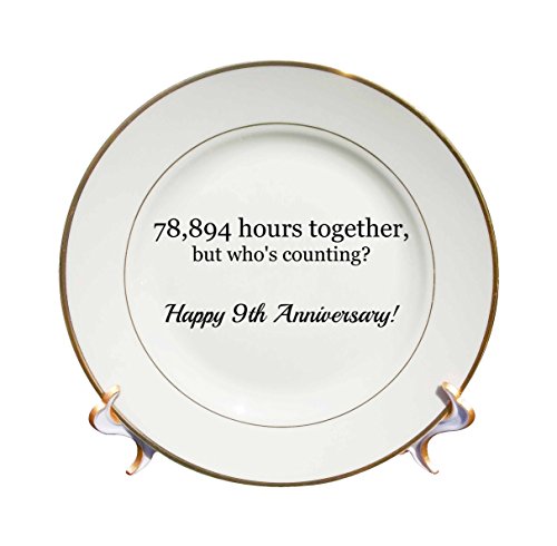 3dRose cp_224654_1 Happy 9th Anniversary 78894 Hours Together Porcelain Plate, 8"