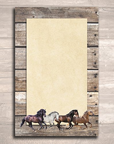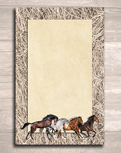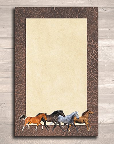 Studio : Personalized Paper Manufacturing Group Publisher : Personalized Paper Manufacturing Group Binding : Office Product Product Description These beautiful full-color notepads make for the perfect addition to an equestrian or horse lover's stationary collection. Each set includes three 5.5"x8.5" 50-sheet notepads featuring different backgrounds and different sets of running horses. Black, bay, chestnut, gray, palomino, and pinto horses in a variety of breeds will appeal to any horse enthusiast. 0