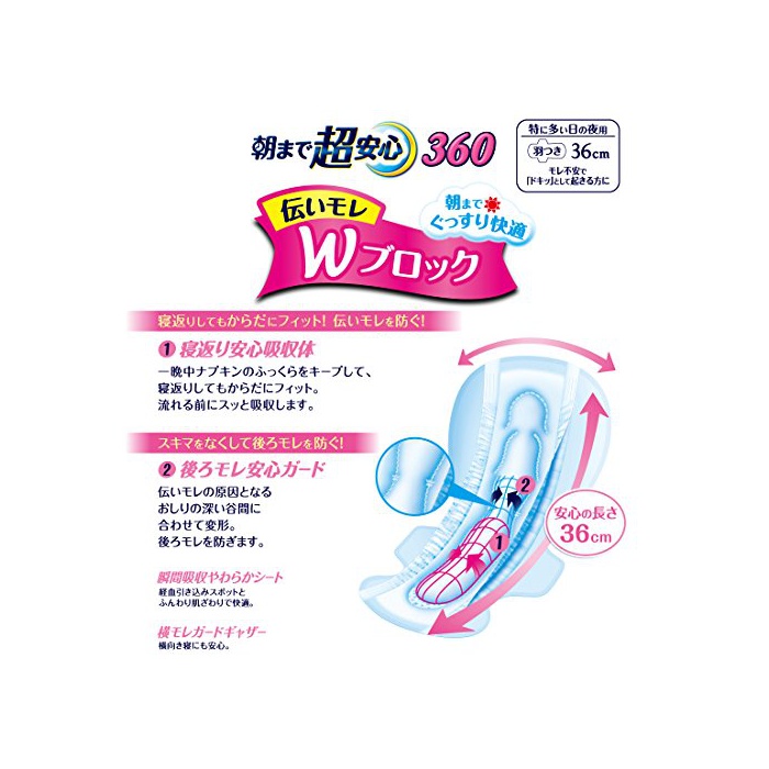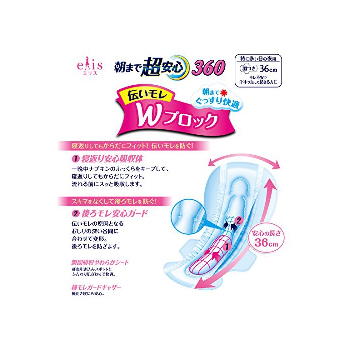 원본상품명: エリス ウルトラガ?ド 朝まで超安心360 (特に多い日の夜用) 羽つき 36cm