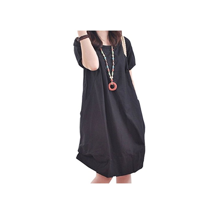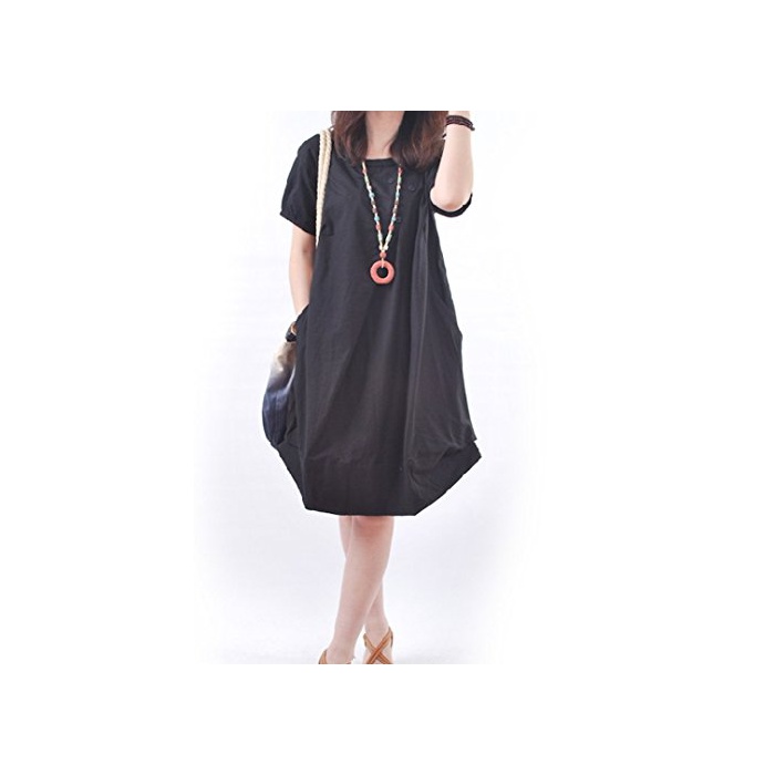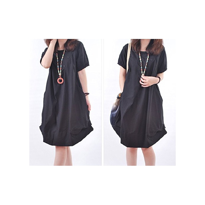 원본상품명: ange select ゆったり デザイン レディス ワンピス 半袖 ひざ丈 コットン さらさら 綿 麻 素材 (ブラックL)