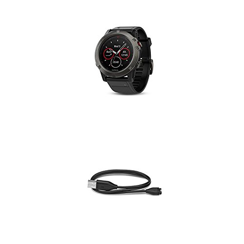 -. Title : Garmin Fenix 5X Sapphire - Slate Gray with Black Band and 010-12491-01 Charging/Data Cable (Fenix 5S, 5, 5X)