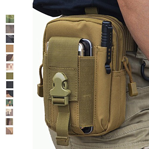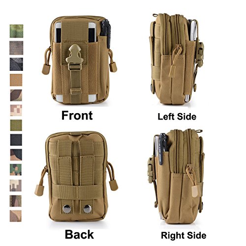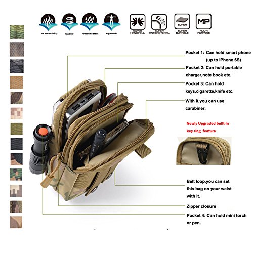- Feature : MULTI PURPOSE: The tactical waist pack is more-in-one pouch. Small bag is with large capacity. It is very easy to put goods in and take out. Perfect for storing cell phone, keychain, GPS device, digital cameras, medical supplies, small tools, and everything else you need readily accessible. Two zippered compartments, exterior phone pocket£¨fits iPhone 6S/6+£©with buckle closeure£¬exterior pen sheath / WATER-RESISTANT: The tool pouch is of strong water proofing property to ensure its long-term use in a humid environment, or that the product does not decay after flooding. / WEAR-RESISTING: The tactical pouch is constructed of high- quality 600D Nylon, and anti-scraped and wear-resisting, not easy to fade. All stitching and webbing is made of nylon materials of best quality, double plus bar umbrella hove chain head. It is really durable. / EASY TO USE: The surface of the Utility Gadget Pouch is not easy to stick dust, stains, easy to take care. together with thoughtful built-in key chain design. / SELECTED FREE BONUS AND 100% FREE TRIAL: 6.99USD CUTE Aluminum super bright mini keychain flashlight with Carabiner as a USEFUL free plus used in many circumstances. NOW it is limited FREE bonus for PROMOTION. Order now and if you dislike within 90 days, we will buy back from you, 100% RISK FREE!