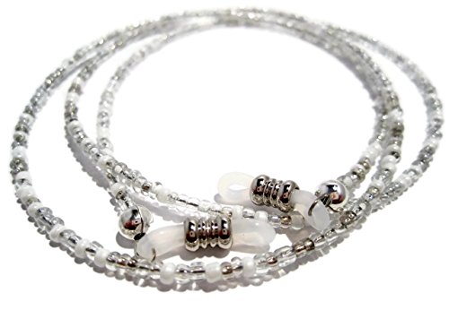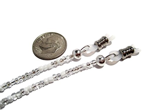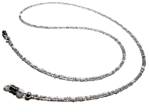 ATLanyards Silver and White Beaded Eyeglass Holder- Silver and White Eyeglass Holder Chain
