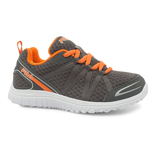 Fila Boys' Flyver Skate Shoe, Castle Rock/Vibrant Orange/Metallic Silver, 4.5 M US Big Kid