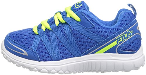 Fila Boys' Flyver Skate Shoe, Electric Blue/Safety Yellow/Metallic Silver, 2.5 M US Little Kid