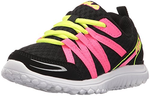 Fila Girls' Flyver Skate Shoe, Black/Knockout Pink/Safety Yellow, 12 M US Little Kid