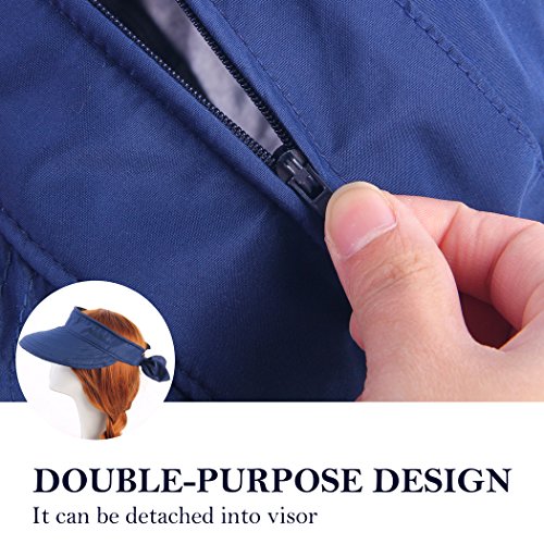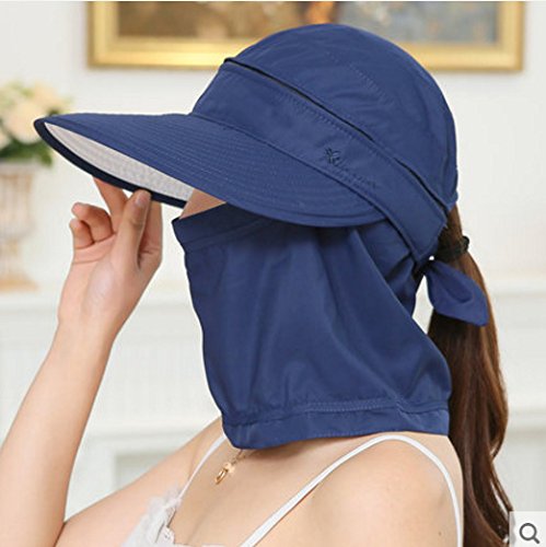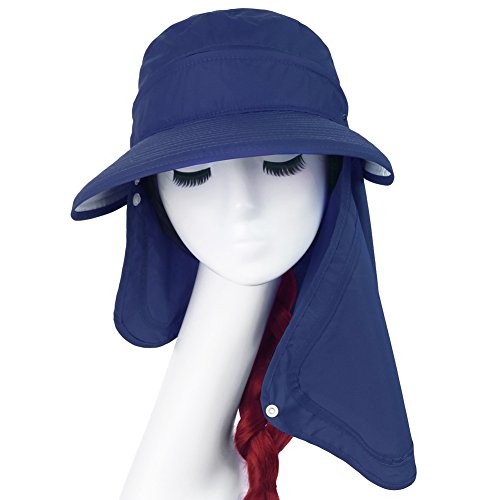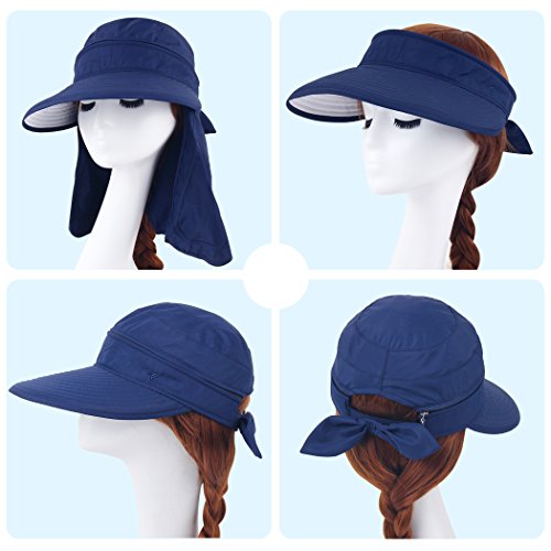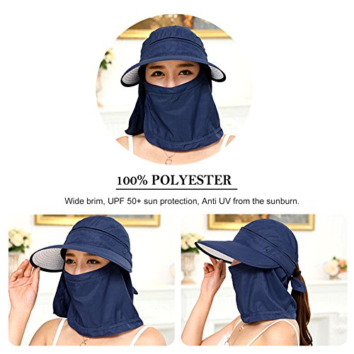 This simple and convenient Anti-UV Summer Sun Hats features: - Back Velcro: adjustable for a better fit. - 4.5' Wide Brim: large enough to shade forehead. - Detachable Top: easy to convert into a visor. - Long Removeable Neck Cover: great ventilated to keep you cool in summer.