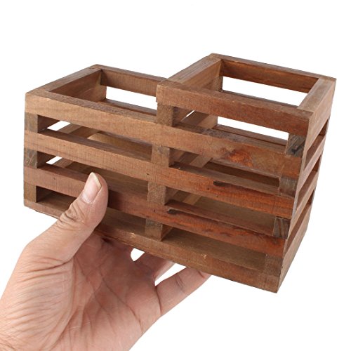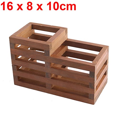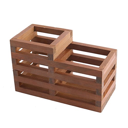 uxcell Wood Office School Hollow Out Two Compartment Pen Ruler Pencil Holder Organizer