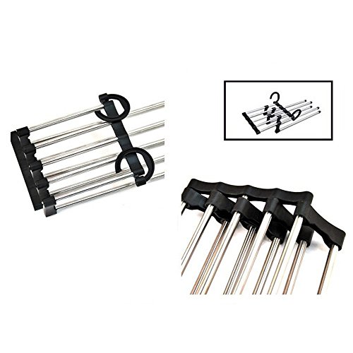-. Binding : Kitchen -. Brand : LUQUAN -. EAN : 0711212139937 -. Feature : 5 in 1 design, keep your trousers neat and tidy, save more space. Two hooks on the top. You can use both two hooks for horizontal hanging or you can only use one hook for vertical hanging. With five stainless steel tubes, each tube can be pulled outward for convenient hanging and fetching. It can also be used as clothes drying rack. Made of high quality stainless steel, durable and portable to use. / Pants Hanger - 5 in 1 Portable Multifunctional Stainless Steel Pants Trousers Rack Closet Hanger Black & silver -. Label : LUQUAN -. Manufacturer : LUQUAN -. ProductGroup : Home -. ProductTypeName : HOME -. Publisher : LUQUAN -. Studio : LUQUAN -. Title : LUQUAN Pants Hanger - 5 In 1 Portable Multifunctional Stainless Steel Pants Trousers Rack Closet Hanger Black & Silver -. UPC : 711212139937