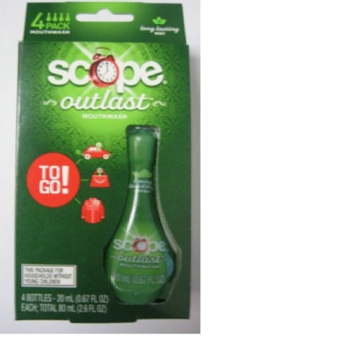 -. Title : Scope Outlast to Go Mouthwash Long Lasting, Mint, 4 CT (PACK OF 3) - 20 ml(0.67 fl oz) per bottle